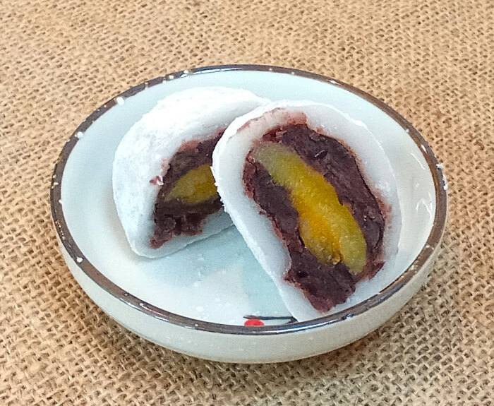 Bola de Mochi Azuki con albaricoque, Azuki con nata